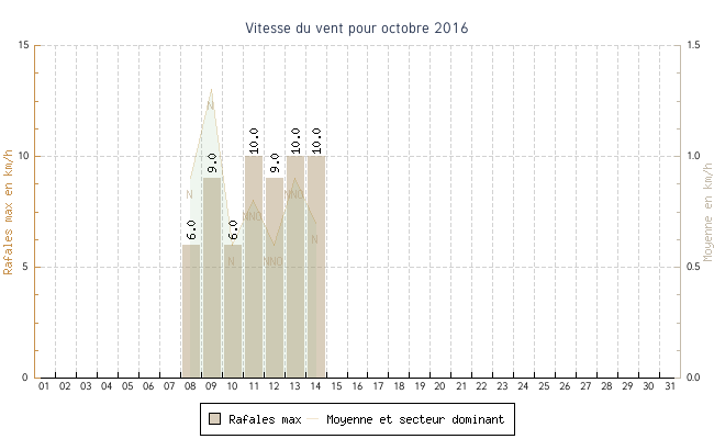 | min | max | moy | Vitesse (rafales) | Secteur | ||